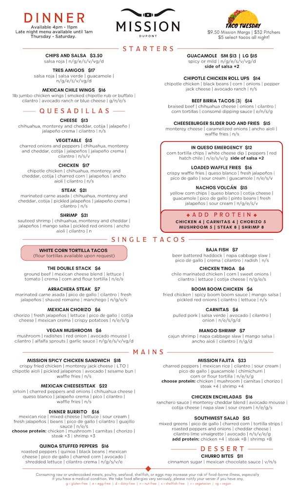 salsa roja | salsa verde | guacamole | n/g/e/s/v/vg/d
